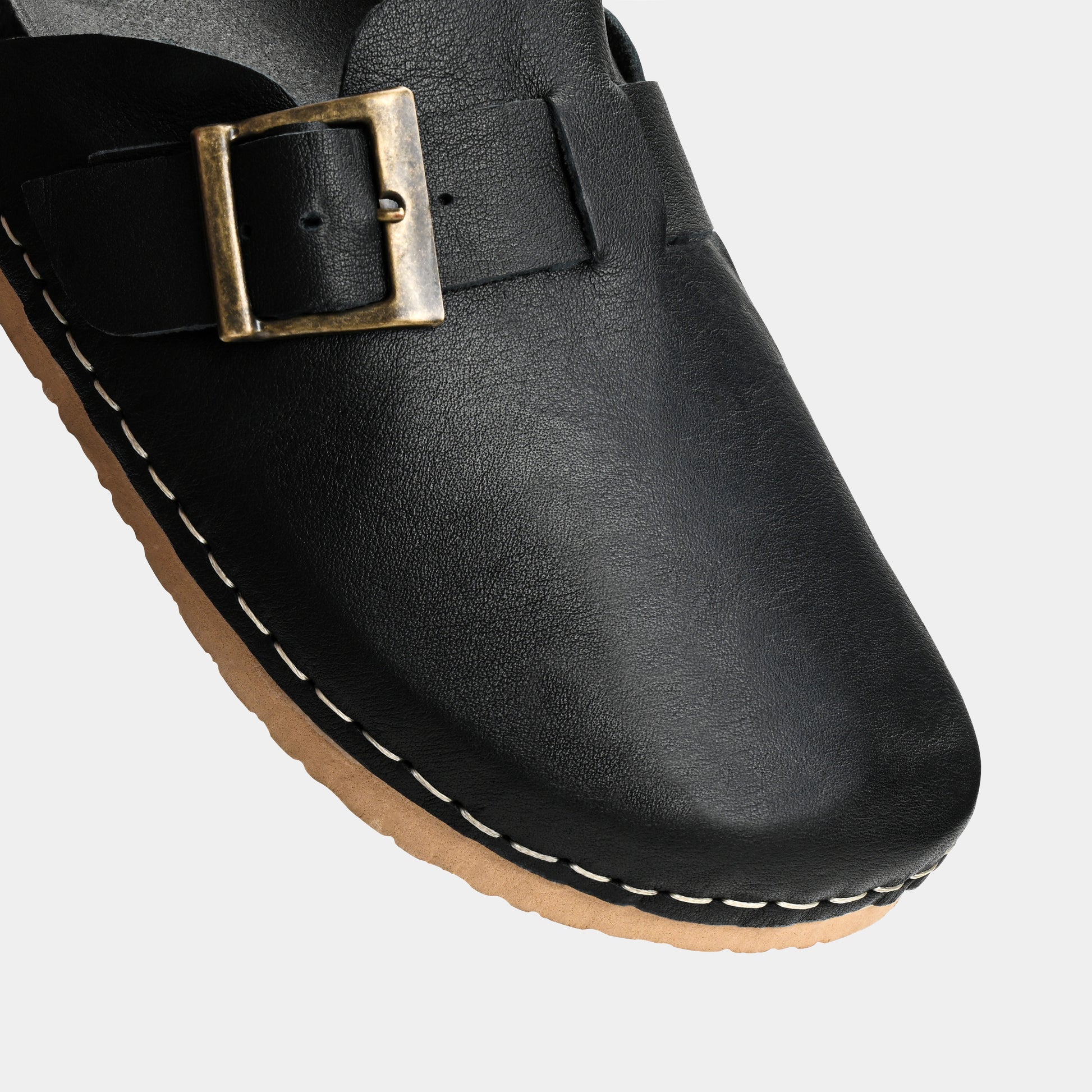 Su silueta limpia abraza el pie con suavidad, mientras el cuero mate se vuelve un lienzo cálido y auténtico. El detalle protagonista: una hebilla metálica envejecida que aporta carácter y ese guiño entre lo artesanal y lo contemporáneo. La costura visible recorre su contorno como una firma de tradición, equilibrada por una suela ligera que convierte cada paso en una caricia discreta pero presente.