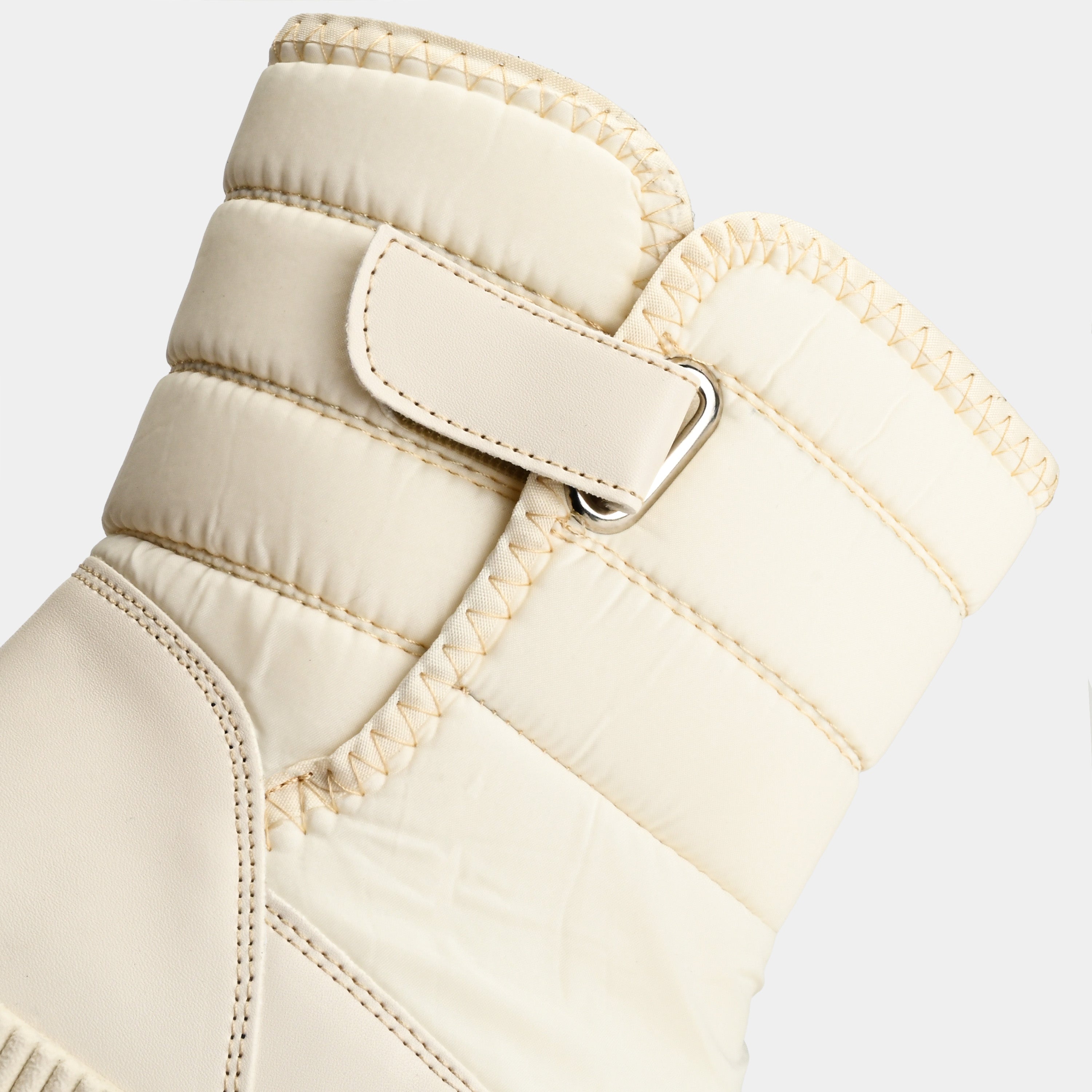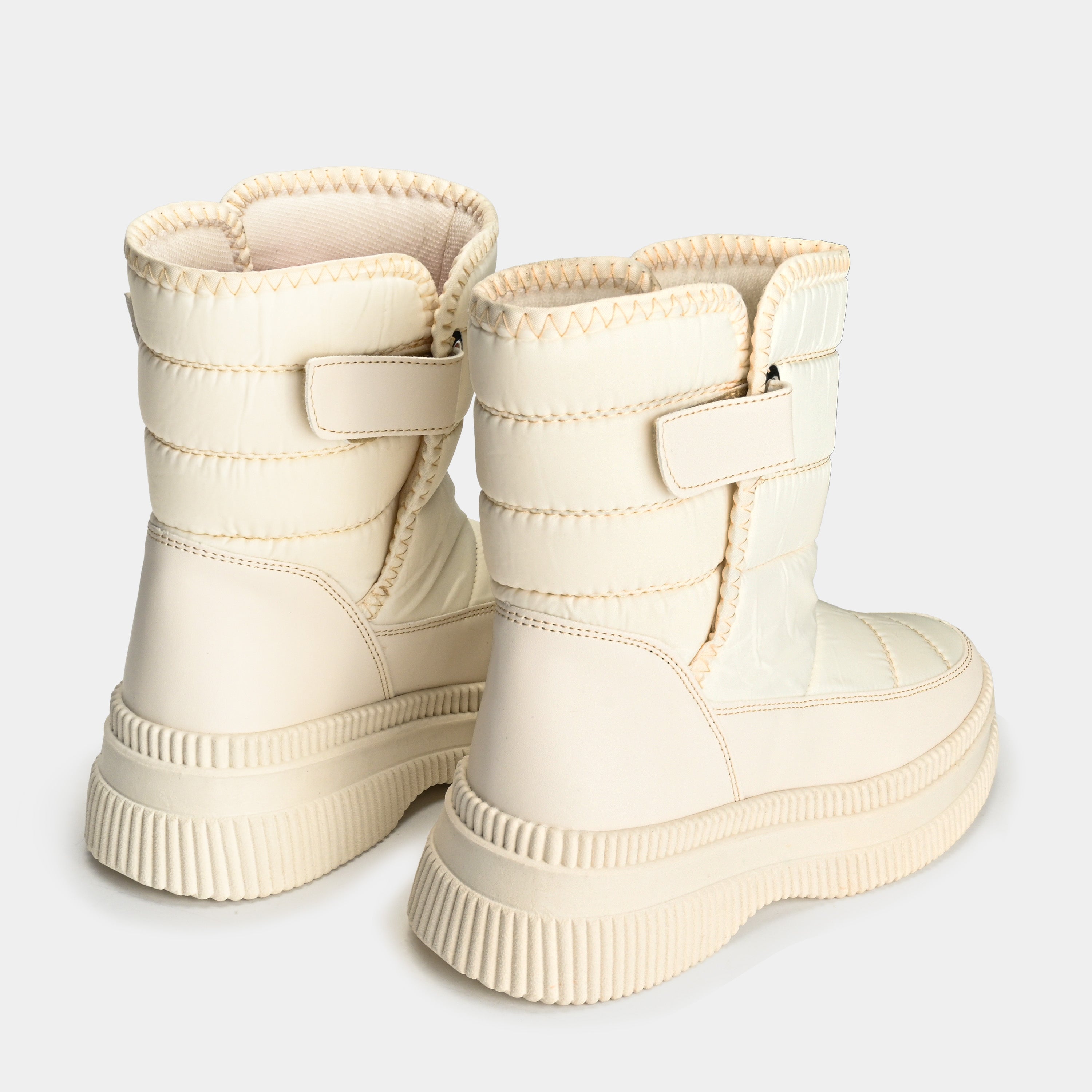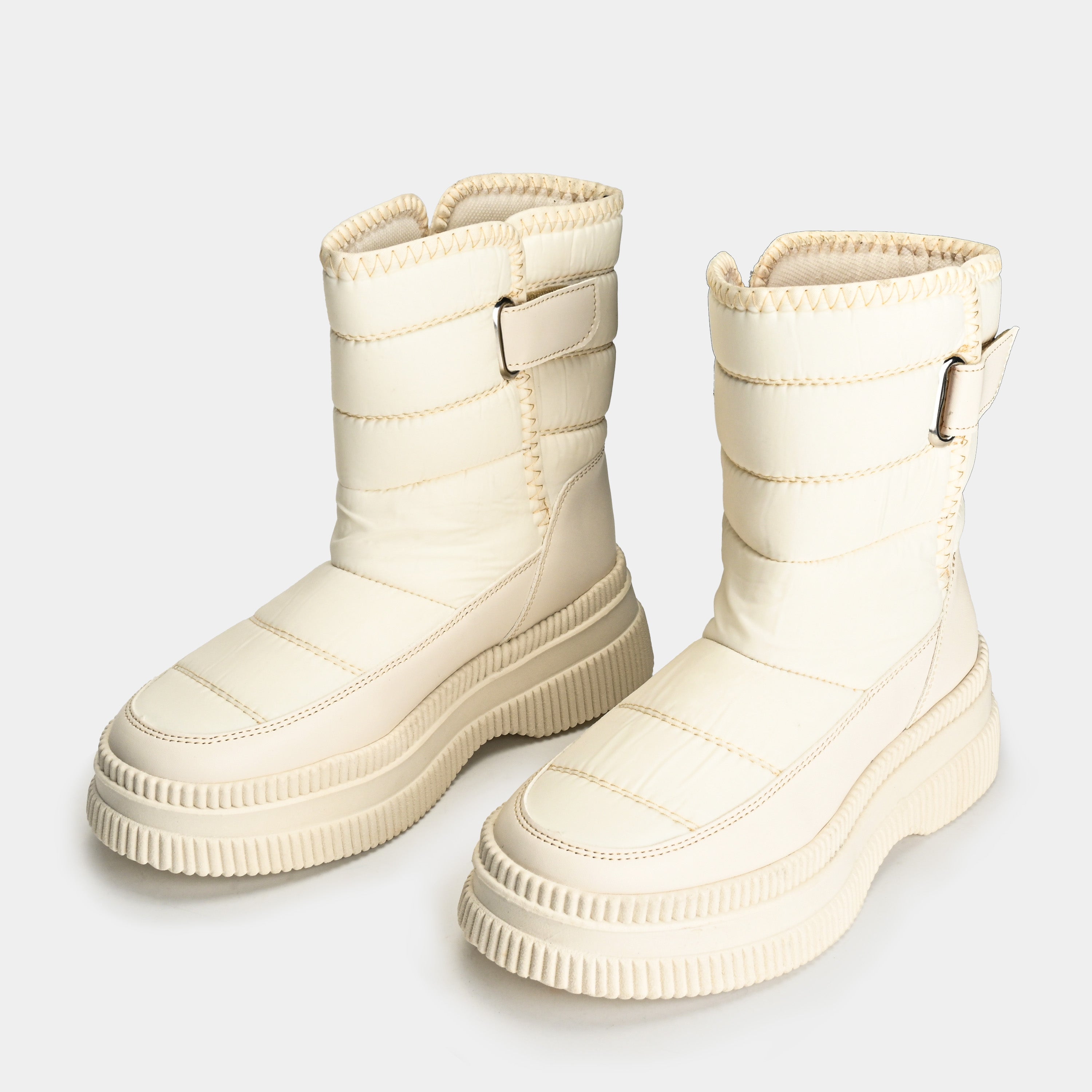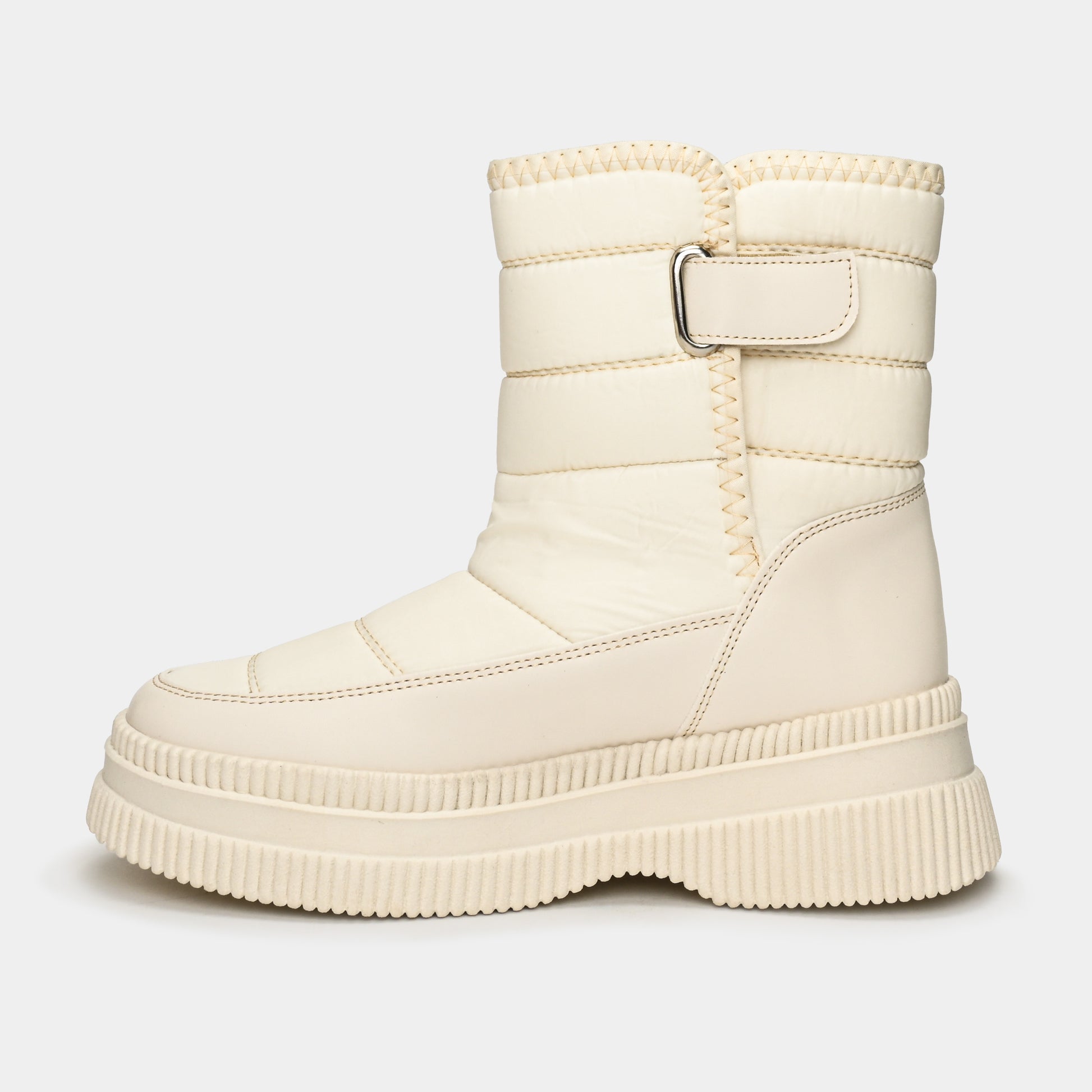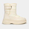 Descubre el confort urbano con esta bota de espíritu audaz. Su diseño acolchado ofrece una protección cálida y un calce ideal gracias al ajuste con correa de velcro y hebilla metálica. Las costuras detalladas resaltan su carácter funcional y artesanal. La imponente suela de plataforma no solo te da altura, sino una pisada todoterreno con una grita inigualable. Perfecta para la mujer que busca la fusión entre el estilo urbano y la máxima comodidad en su día a día.